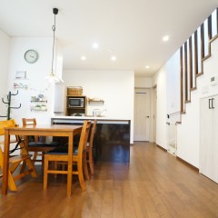 家事・育児に忙しいママが過ごしやすい間取りであることと、パパや子供たちも普段から家事をするママの姿を確認できるので、お手伝いや家事分担にもつながりやすいプランです。