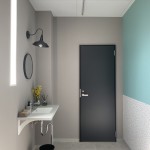 店舗共有のトイレへの通路は、両方の店舗カラーを複合した雰囲気な事もポイントです。